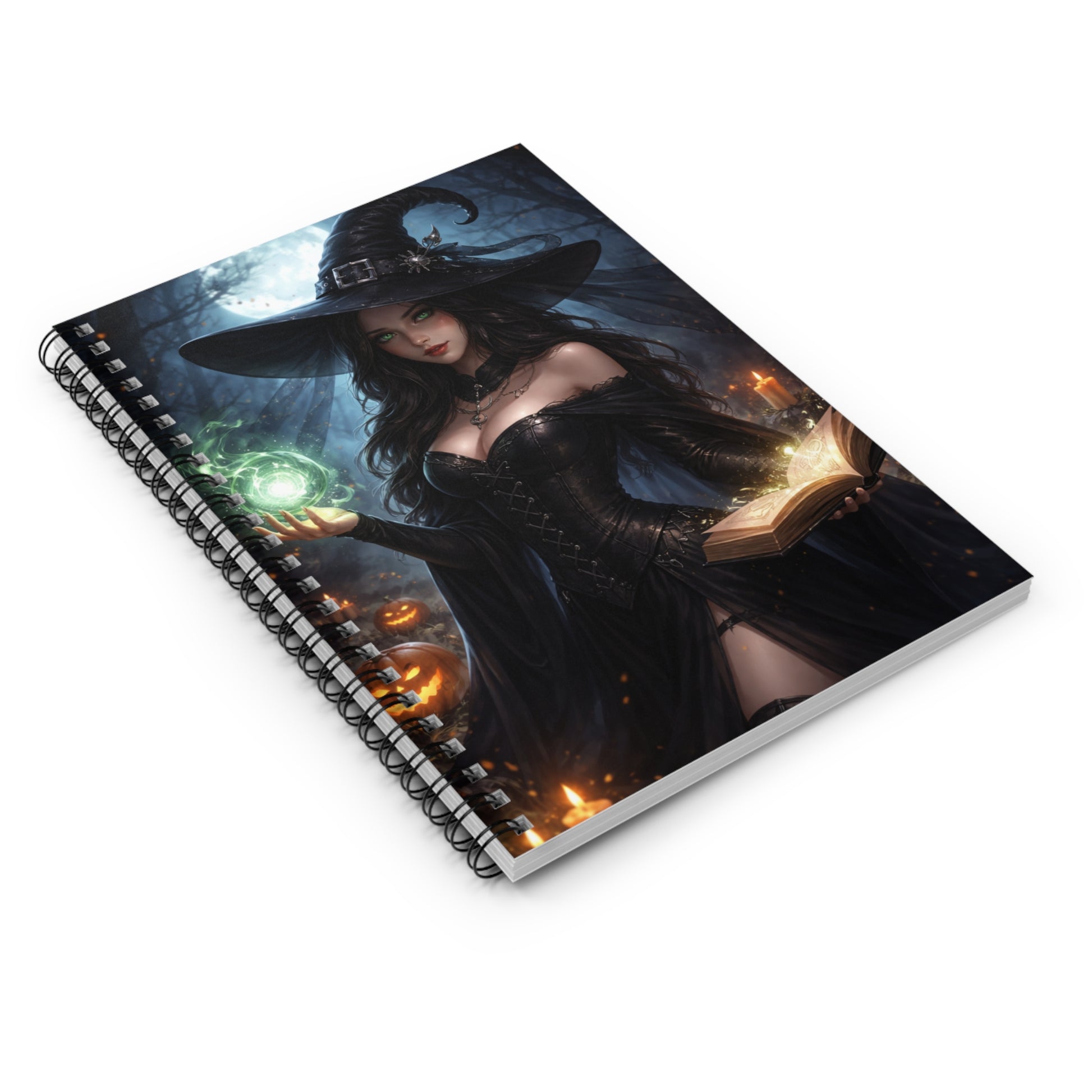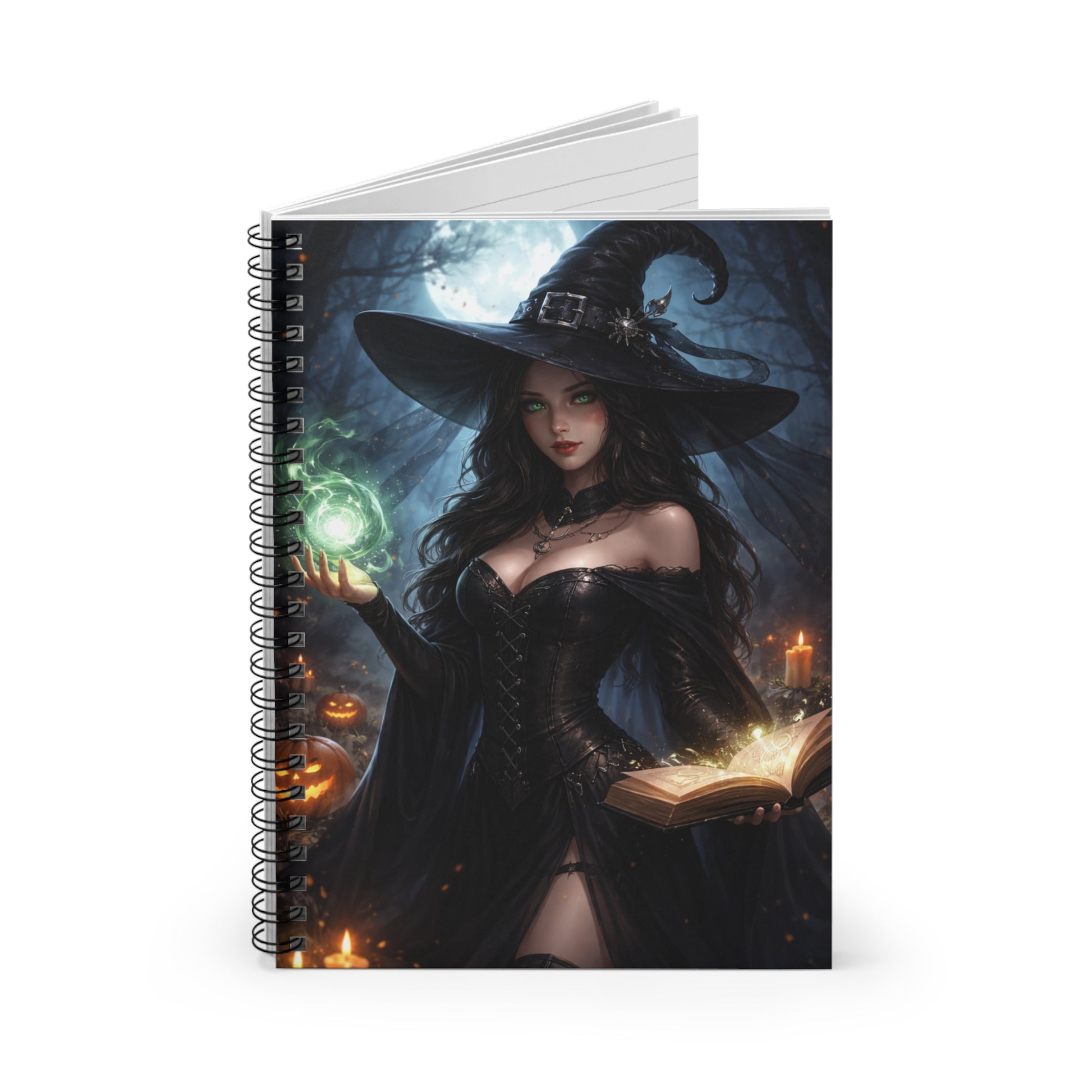 Unleash your creativity with this enchanting Moonlit Witch Spiral Notebook, featuring a striking fantasy witch design set beneath a glowing full moon. Perfect for shopping lists, school notes, poetry, journaling, or magical musings, this notebook blends dark elegance with everyday practicality.